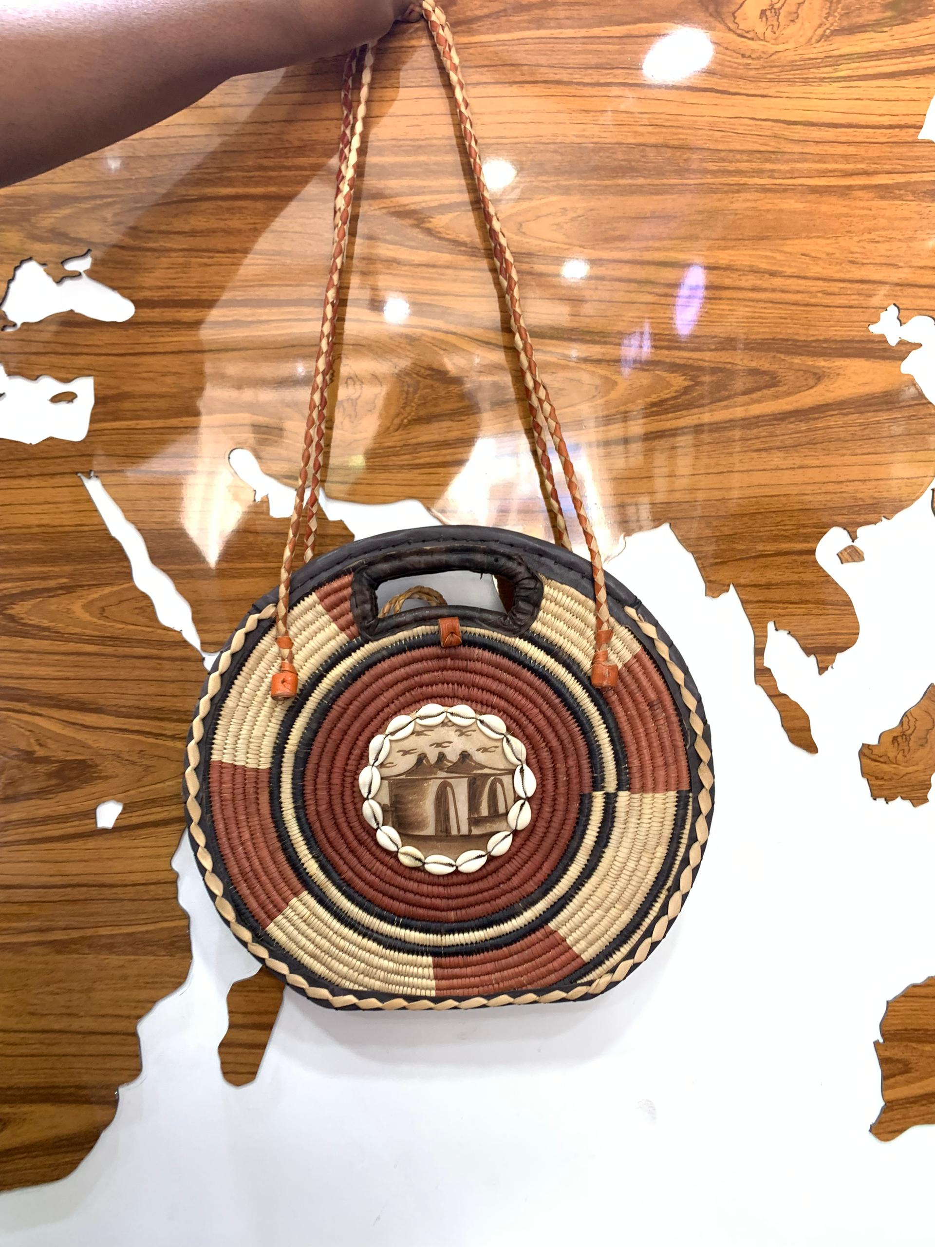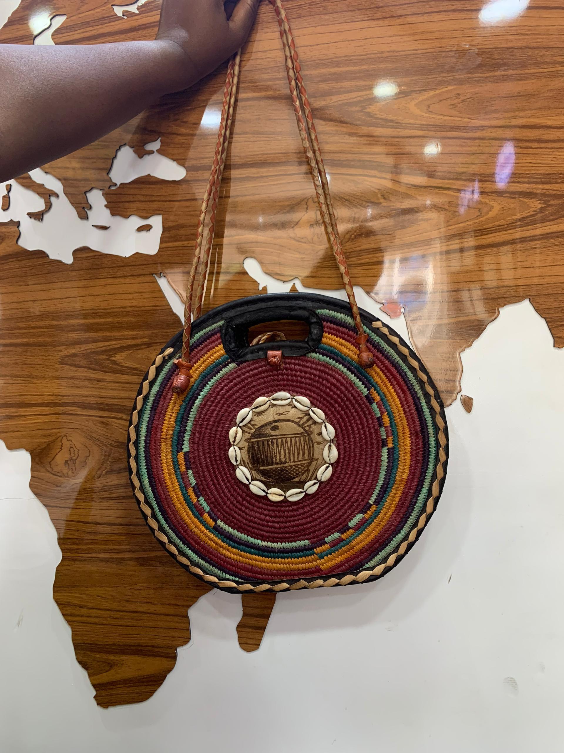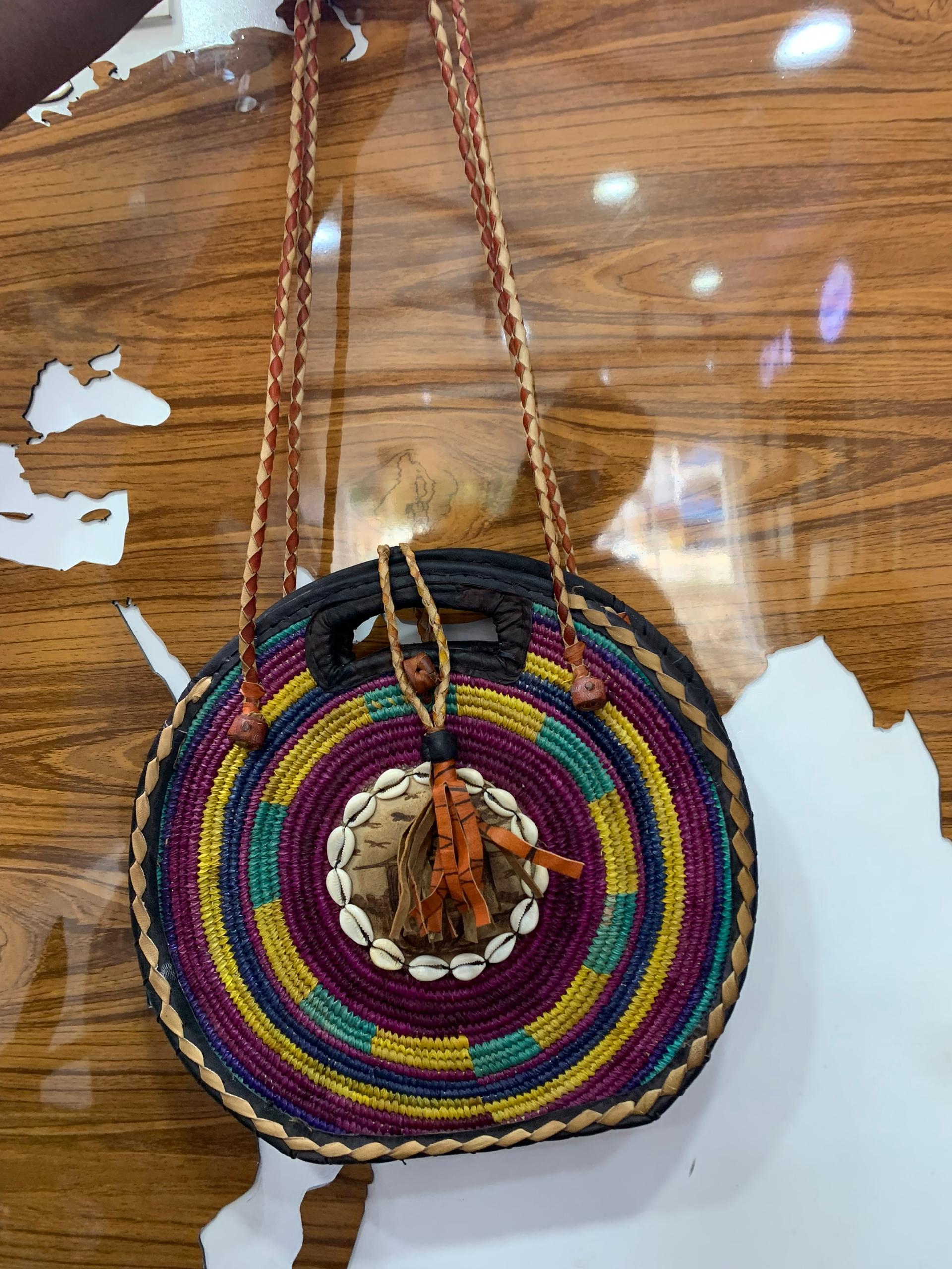 Traditional Rattan Bags & leather beach bag decorated with cowries