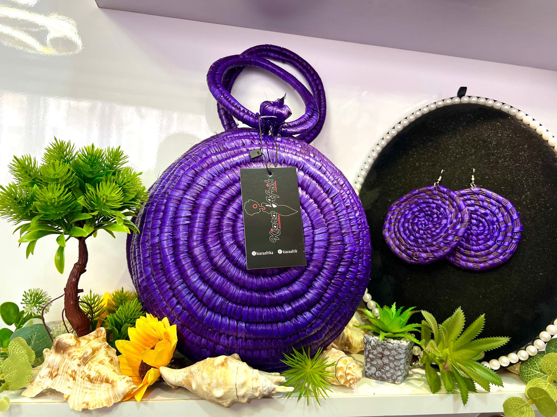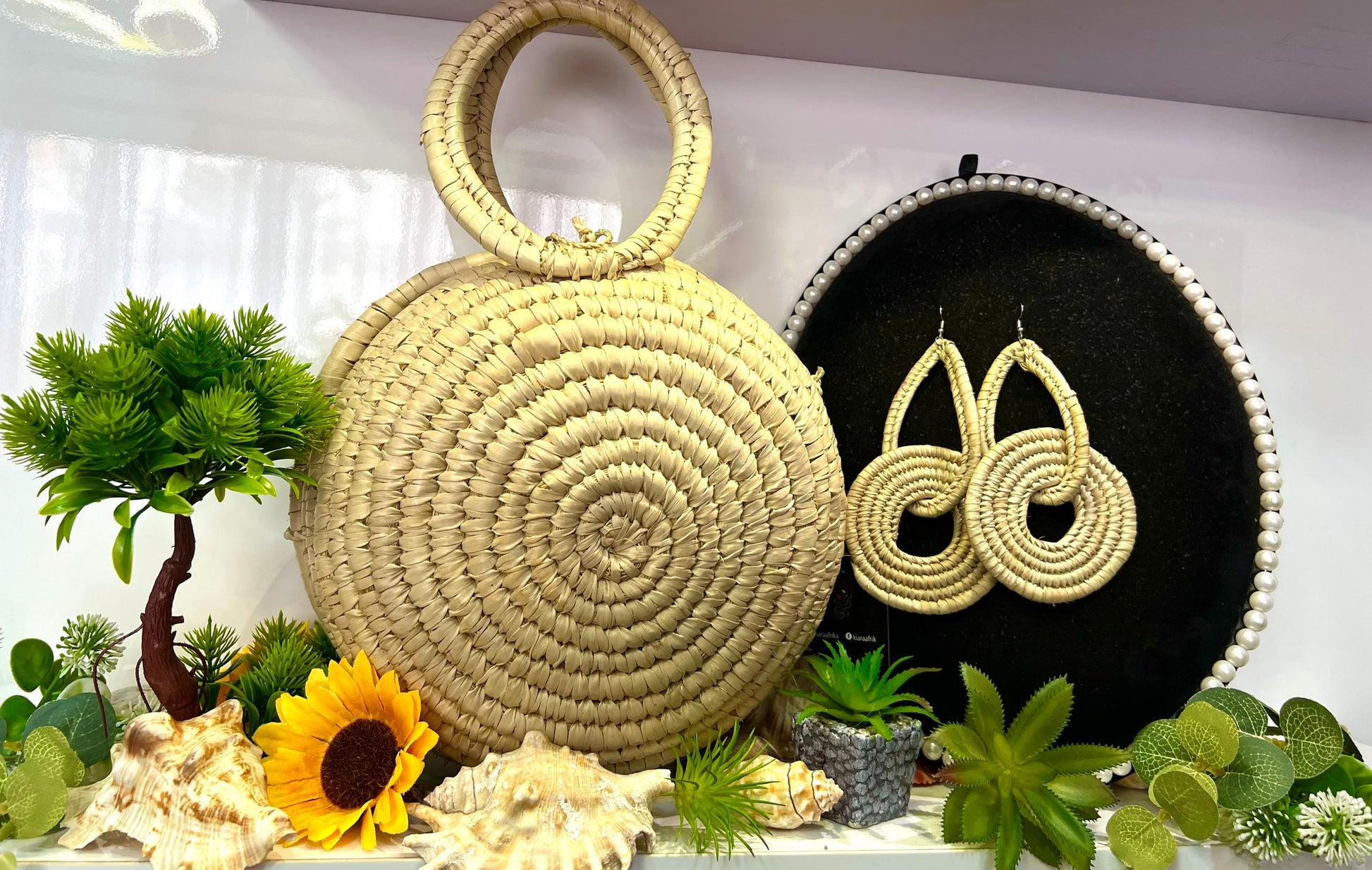 - Rattan bag with Matching earrings